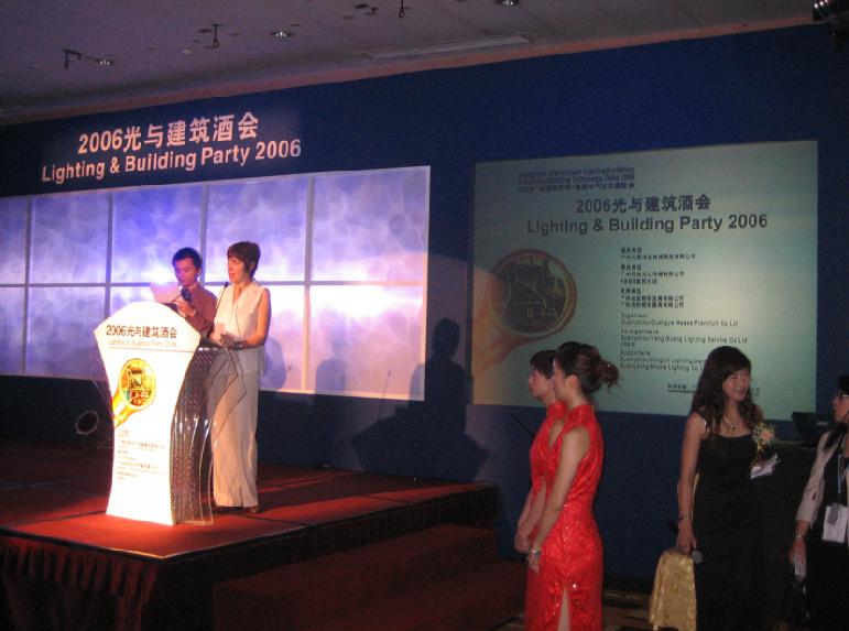 2006年光与建筑酒会 时间&地点:6月8日 广州中国大酒店丽晶殿 主办单位:广州光亚法兰克福展览公司承办单位:广州仰光文化传播有限公司、ABBS建筑论坛出席嘉宾:法兰克福展览公司Iris Jeglitza-Moshage女士、潘文波先生、詹庆旋教授、荣浩磊博士、同济大学建筑城规学院郝洛西副教授、Alain Guilhot先生以及来自全国各地建筑设计院的资深建筑师、电气工程师、照明设计师、房地产业主和相关政府代表等高端人士出席。 ...2014/02/25查看 >
